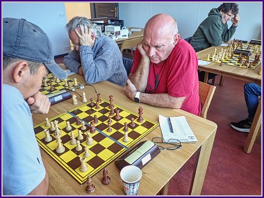 Ve čtvrtek na tréninku už jsme měli jasnou sestavu, proto se trénovalo podle barev, ti, kteří měli mít v neděli bílé figury si pilovali svá zahájení a černí zase obranu. Že to byla jen teorie a marná snaha, ukazuje dnešní výsledek, kde si bílí takzvaně ani neškrtli a všechny partie se staly kořistí černých figur. No ale hlavně že jsme odjížděli v dobré náladě, většinou jsme v prvních kolech dostávali spíš nářezy.