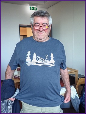 O našem vítězství se rozhodlo na jedničce. V dámském gambitu obvykle černý pěšáka na c4 neudrží a bílý materiál vyrovná. Tady se to stalo taky, jenže bílý přitom aktivně rozehrál své střelce tak mohutně, že o jednoho přišel a pak už to byla jen otázka techniky, jak se říká. Boris žádnou chybu neudělal, naopak to byl jeho soupeř, který ve snaze o nějakou záchranu špatné pozice přicházel ještě o kvalitu a to už se hraje hodně těžko. Rozhodnuto, 3:1. V průběhu poslední partie na druhém stole to dlouho vypadalo, že bychom své skóre mohli ještě vylepšit. Jirka po většinu partie stál o dost lépe, možná i vyhraně, ale posledních pár tahů se mu vůbec nepovedlo a z nadějné pozice byla jasně prohraná koncovka. Škoda, měl na celý bod. Ani to stylové tričko, ve kterém se představil, mu k úspěchu nepomohlo. Konec, vítězíme 3:2.